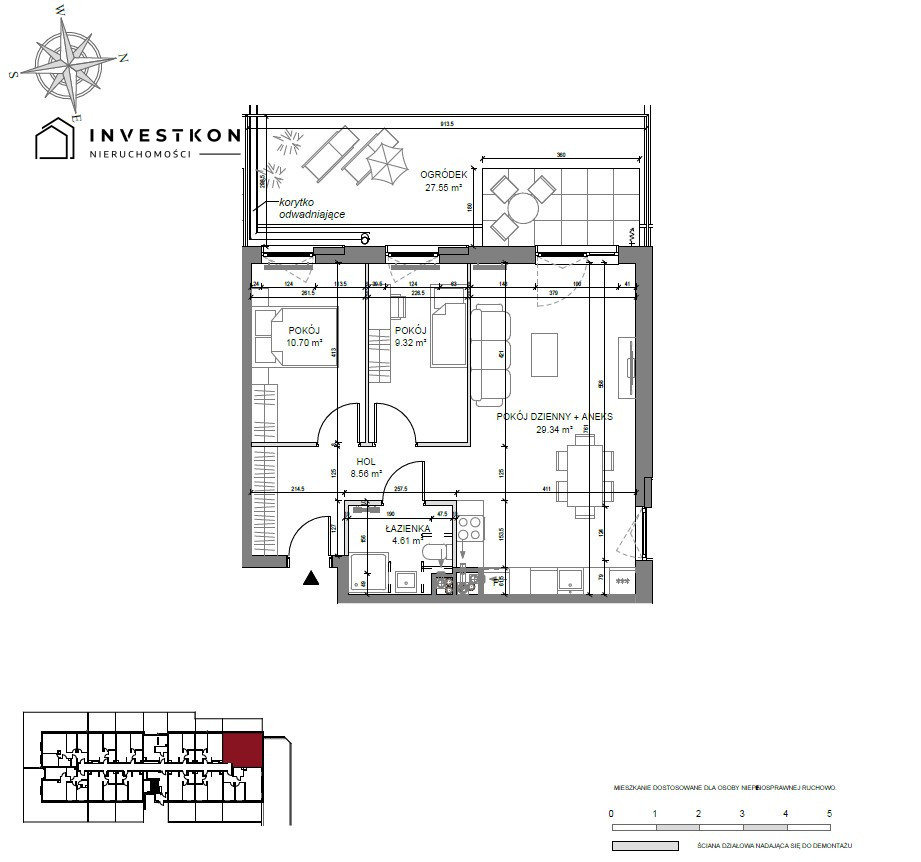Prezentowany apartament to 3-pokojowe mieszkanie w stanie deweloperskim, z wydzieloną sypialnią, o powierzchni 62,53 m2 w budynku A . Apartament znajduje się na pierwszym parterze. Mieszkanie posiada ogródek 27,55m2 z ekspozycją od strony zachodniej.