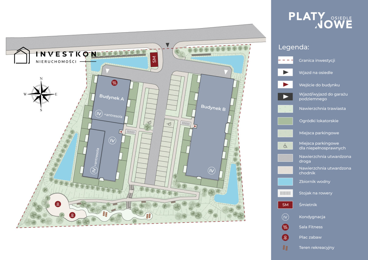 Na terenie osiedla będzie siłownia dla mieszkańców zlokalizowana w BUD. A, a w ramach części wspólnych znajdzie się również plac zabaw, leżaki, ławeczki oraz dużo pięknej zieleni.